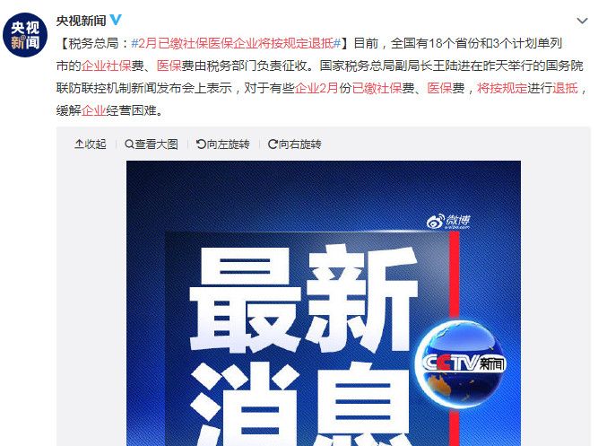 国家税务总局副局长在昨天举行的国务院联防联控机制新闻发布会上表示,对于有些企业2月份已缴社保费、医保费,将按规定进行退抵,缓解企业经营困难。