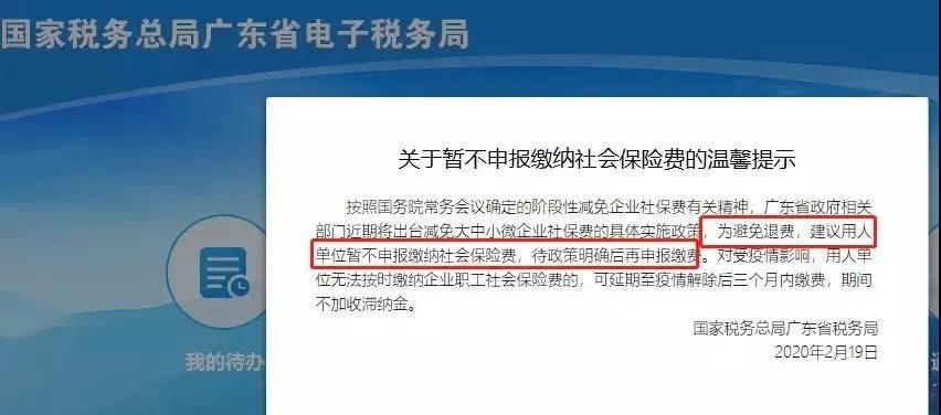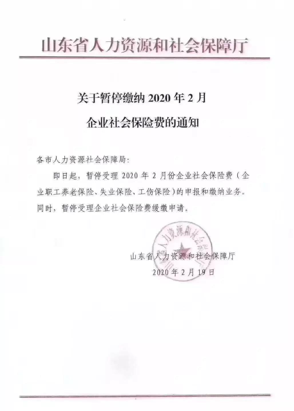 通知也出来了山东和广东这两个省份还是比较迅速的,都相继发布通知,建议暂停缴纳2月份社保费用: