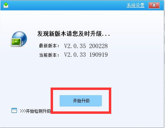 第一步:打开软件提示升级,点击“开始升级”按钮,系统自动下载升级程序并启动安装,直至安装完成即可。
