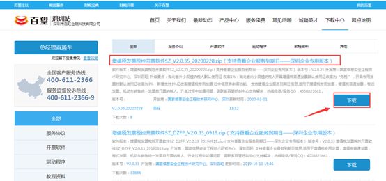 第二步:从深圳百旺官网http://sz.baiwang.com.cn/中的“下载中心”下载“增值税发票税控开票软件SZ_V2.0.35_20200228”开票软件。
