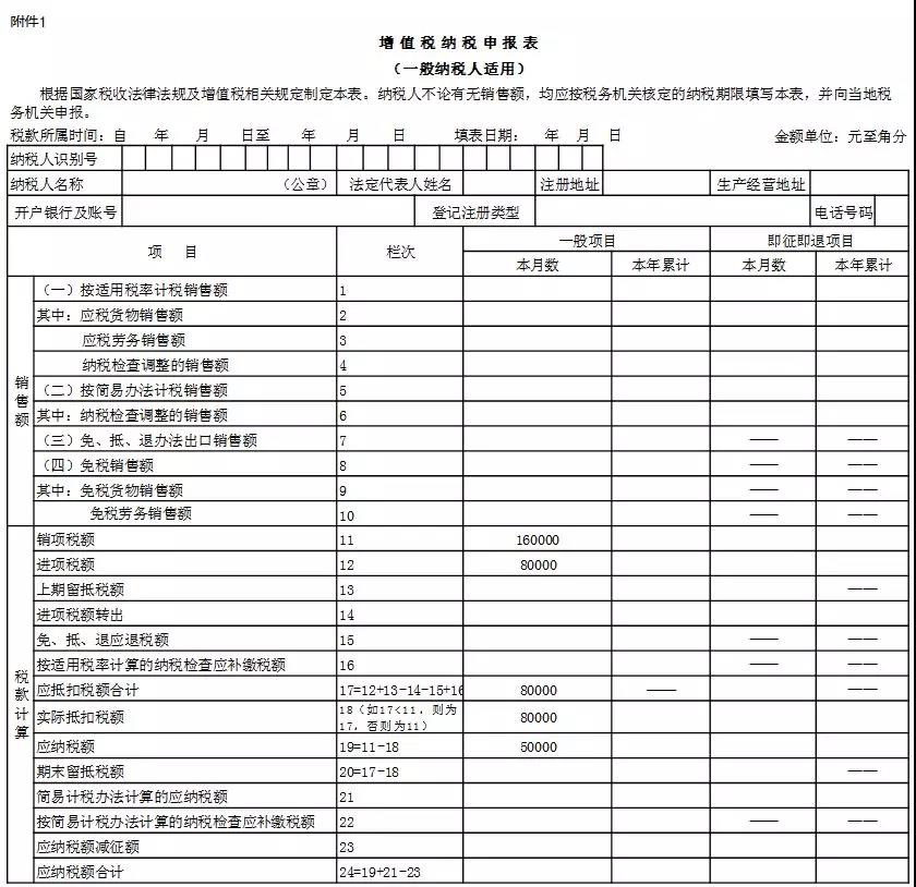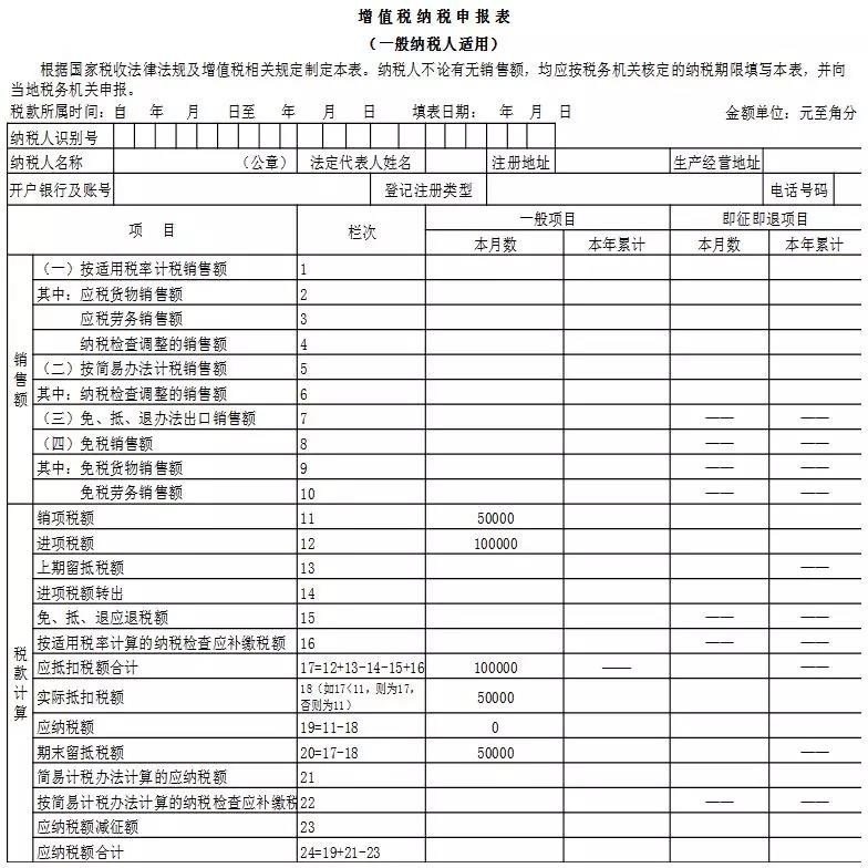 本行“开具增值税专用发票”“销售额”列=100000(元)
