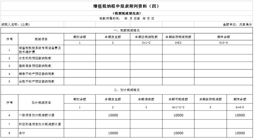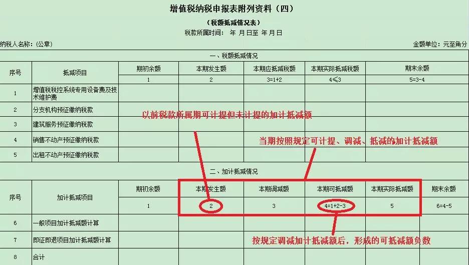 (1)当期按照规定可计提、调减、抵减的加计抵减额,在申报时填写在《增值税纳税申报表附列资料(四)》 “二、加计抵减情况”相关栏次。