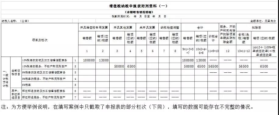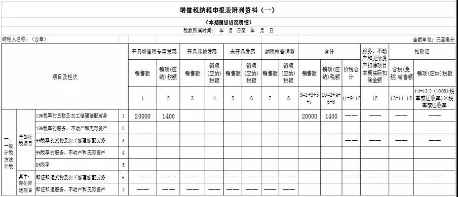 1.《附列资料(一)》第1行“13%税率的货物及加工修理修配劳务”: