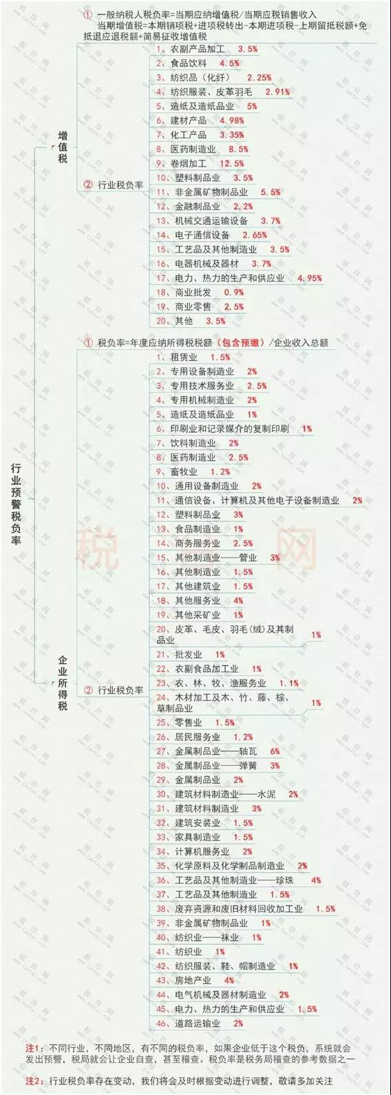 2020各行业最新“预警税负率”大全