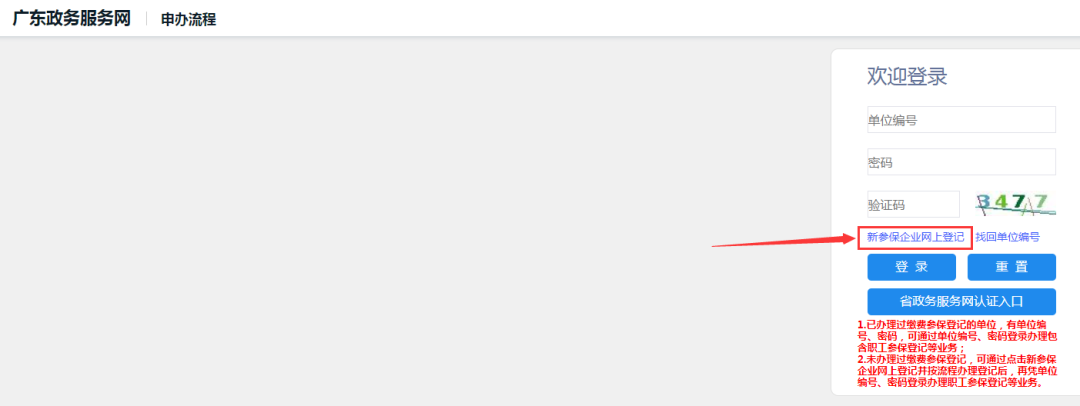 1、点击“单位网上服务系统”,在登陆模块点击“新参保企业网上登记”