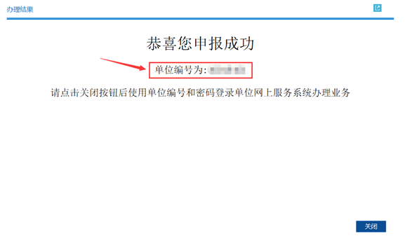 4、申报成功,请牢记单位编号,该单位编号为社保登陆账号